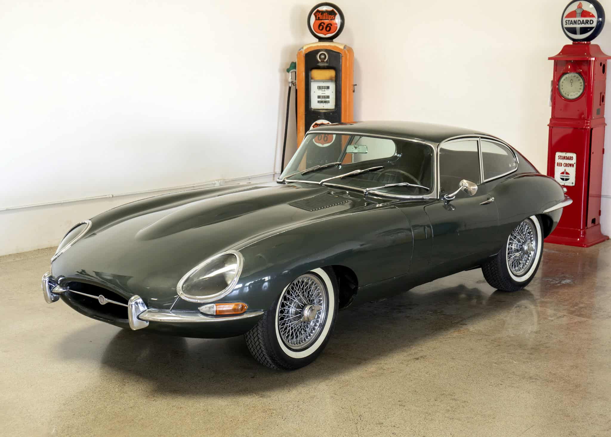 1966 Jaguar E-type Coupe: Solid original body; numbers match; Opalescent Dark Green; stored in a garage since 1986; engine runs well. We purchased this car from a California collector who kept the car well protected since storing it away in 1986 (see reg tags). The body and floor metal is all-original and in excellent condition. We cleaned the fuel system and tested the engine, which runs evenly on all cylinders. All other systems need to be checked prior to driving. The Jaguar Heritage Certificate verifies the car retains its original color, engine, and transmission. Please complete any inspections or ask any questions prior to bidding or committing to buy the car. Thanks for the interest!